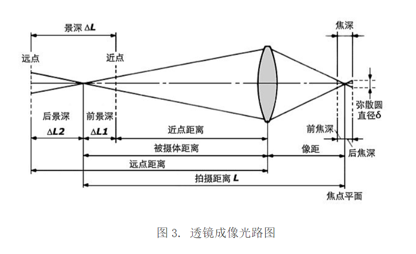 首先在了解光圈與景深的關系之前,我們先介紹兩個概念。光線射入透鏡匯聚成一點,在數學上,這個點我們稱之為焦點。但是在焦點前后形成的光線的聚集和擴散,會產生一個擴大的圓,這個圓就是允許彌散圓,彌散圓仍然足夠清晰呈現物體,通常我們認為這是“合焦”。因此,我們通常用允許彌散圈來作為成像清晰和成像模糊的界限。焦深:兩個允許彌散圈的距離我們稱之為焦深。景深的大小與焦深有著密切的聯系(如圖3.成像光路圖)。前焦深對應著前景深,后焦深對應著后景深。所以,要知道光圈與景深的關系,必須先了解光圈與彌散圈之間的關系。